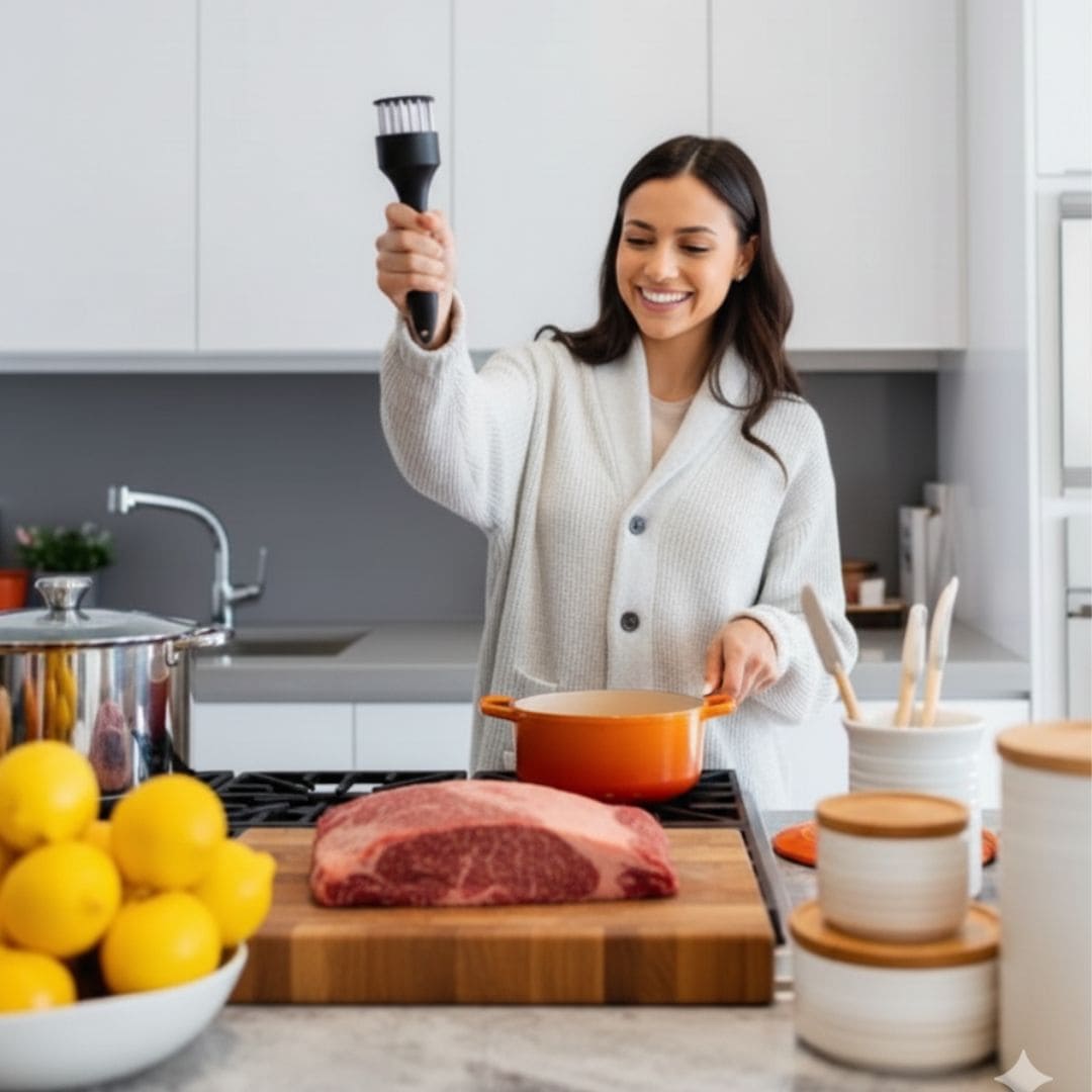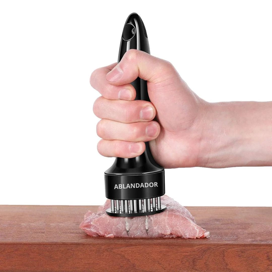 Antes la panceta de chancho, Bistec, quedaban duros e incluso sin sabor. Con el EasySoftᵀᴹ Ablandador, el chancho, la carne, el pollo y hasta el pescado quedan suaves y jugosos. Las marinadas penetran al instante y se cocinan más rápido sin resecarse. ¡Es una herramienta que toda cocina debería tener!