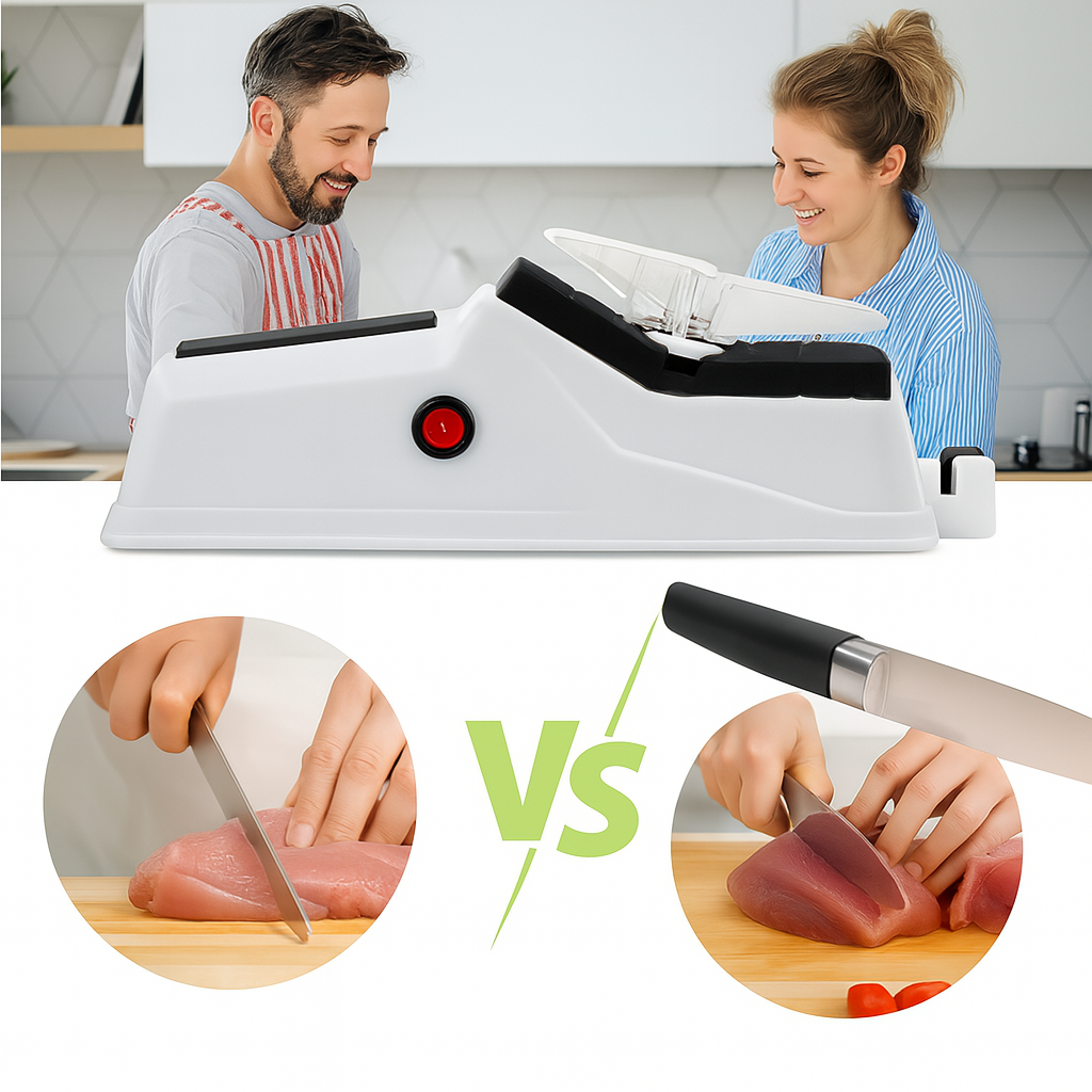 “Siempre batallaba con mis cuchillos porque se desafilaban muy rápido. Con este Afilador Eléctrico de Cuchillos recuperaron el filo en segundos y ahora cortar carne, verduras o pan es facilísimo. Es práctico, seguro y me ahorra tiempo en la cocina. ¡Lo recomiendo a todas las amas de casa!”