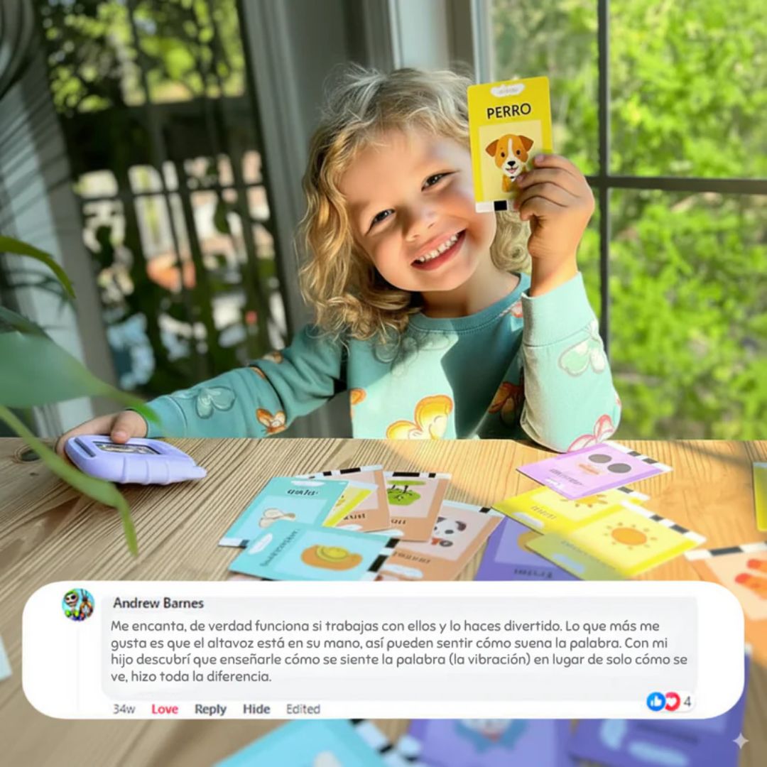 Con las tarjetas y el audio claro, mi hijo se anima a decir más palabras.